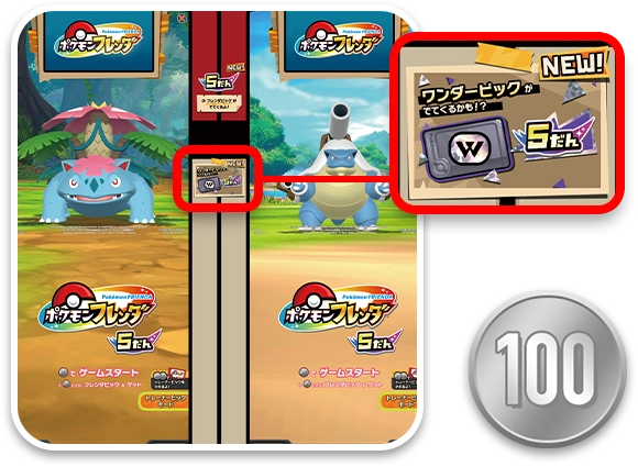 タイトル画面で5だんの「ワンダーピックが出てくるかも!?」の