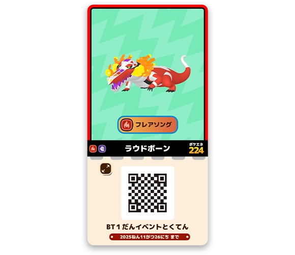 フレンダサークルとくてんのサポートポケモンチケット「ラウドボーン」はデジタルデータでの配布となります。