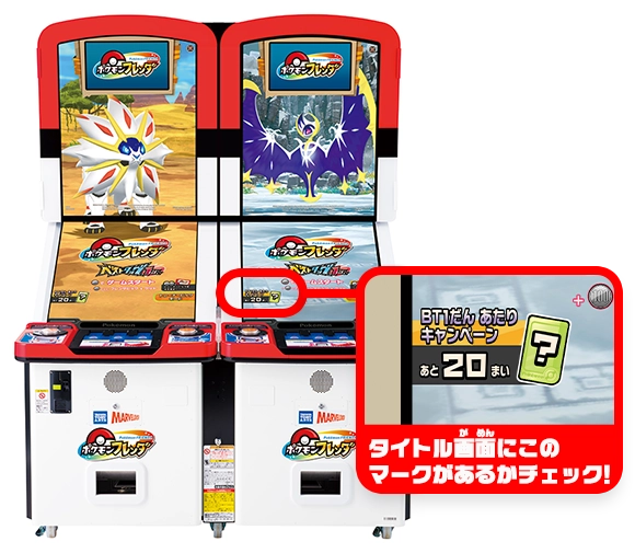 - 100円を入れる前に、タイトル画面左下に表示されているキャンペーン開催中の表記と景品の残り枚数をご確認ください。
