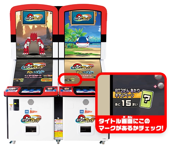 - 100円を入れる前に、タイトル画面左下に表示されているキャンペーン開催中の表記と景品の残り枚数をご確認ください。