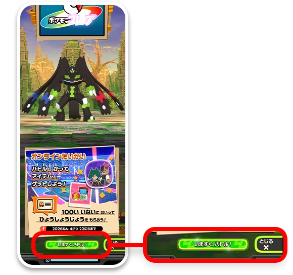 開催期間中に、トレーナーピックを使って、テレビアニメ「ポケットモンスター」のロイ&ウルトとバトルをすると